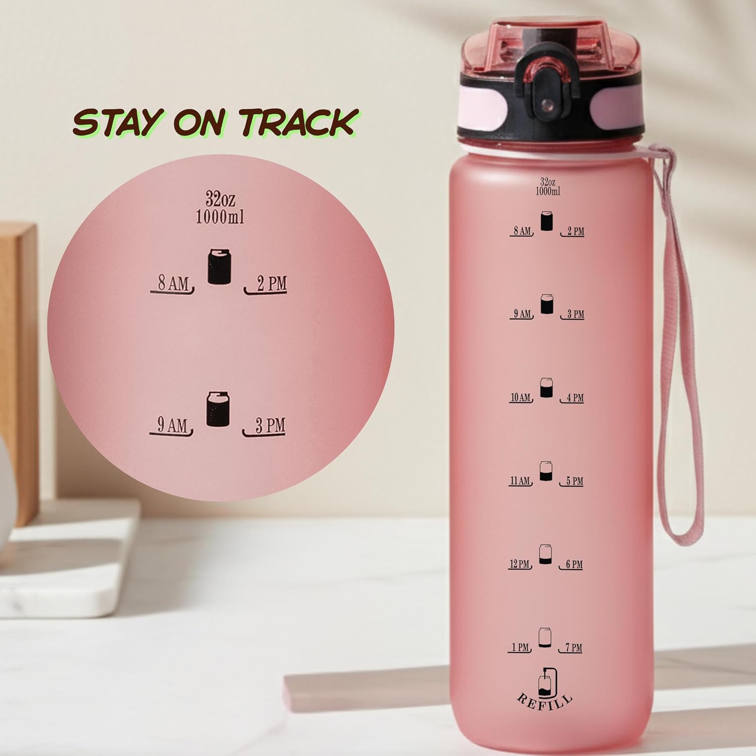 Stay Hydrated with Time Markers: 32 oz water bottle with motivational quotes and hourly time markers to track your daily water intake, helping you meet your fitness and hydration goals effortlessly.