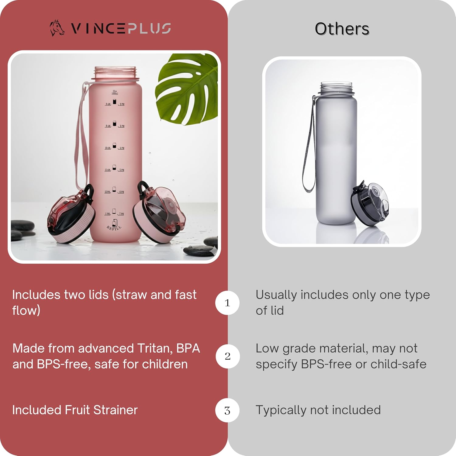 I’ve tried so many water bottles, and most were a letdown. My last one claimed to be “leak-proof,” but it always soaked my bag. Super frustrating!Vinceplus Water Bottle is a total game-changer. It’s actually leak-proof—I’ve shaken it, flipped it, and not a drop escaped. Plus, the shatterproof design is amazing. I’ve dropped it on concrete, and it didn’t crack or scratch!It’s easy to carry, the wide mouth makes adding ice a breeze, and there’s no weird plastic taste. Perfect for workouts, hikes, or everyday use. Highly recommend!