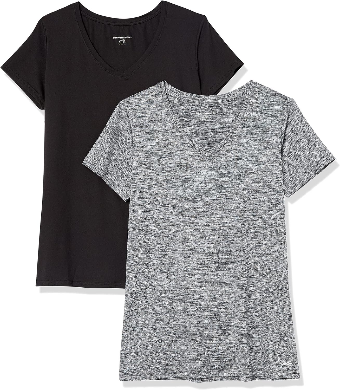 Amazon Essentials Womens Active Quick Dry Tech Stretch Short-Sleeve V-Neck T-Shirt (Available in Plus Size)