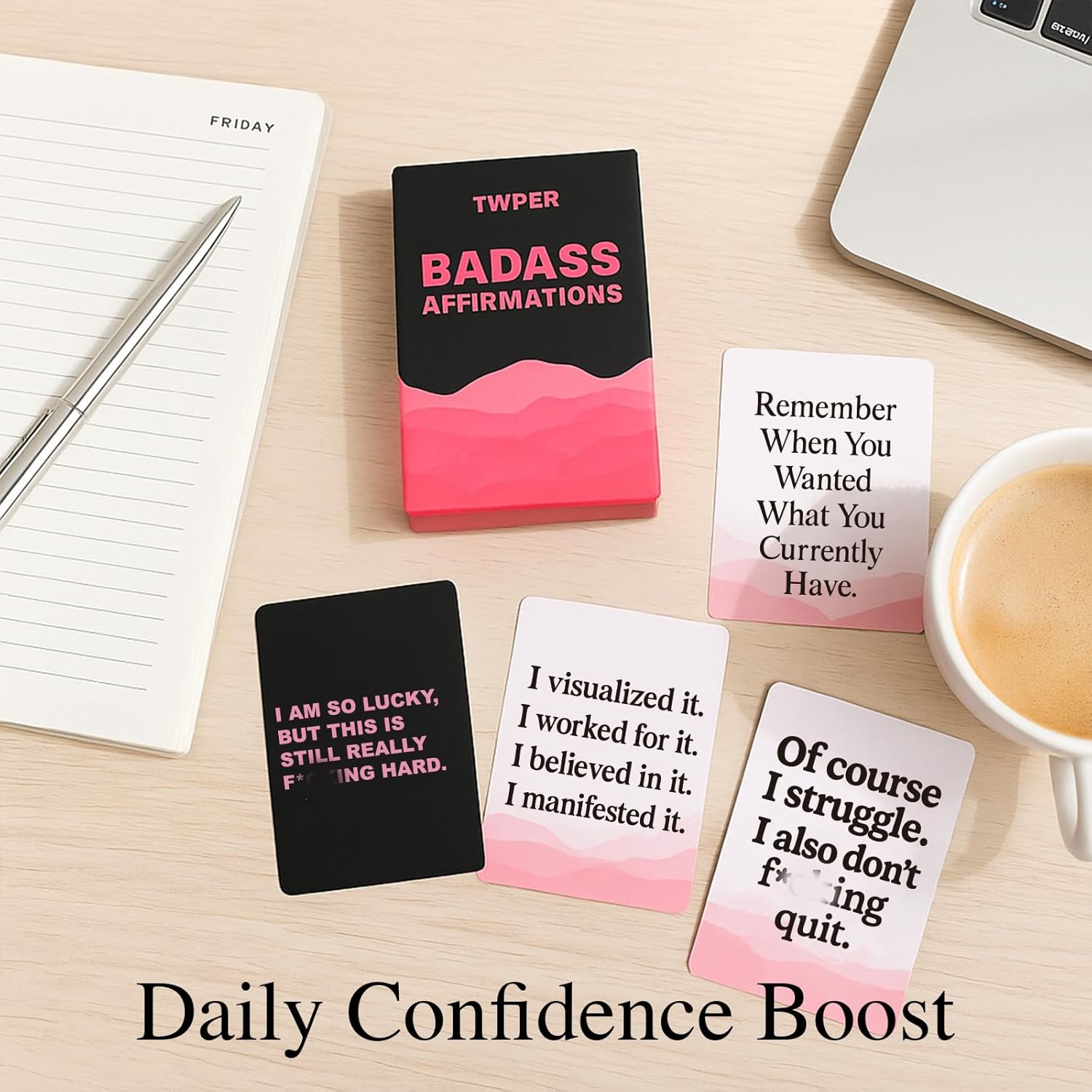 Recharge your mindset and reclaim your power with the TWPER Badass Affirmations Card Deck—a bold, no-BS set of 100 empowering messages designed for modern women who hustle, heal, and grow. Whether you’re facing burnout, anxiety, or just Monday mornings, these daily affirmation cards offer a shot of strength and sass that reminds you exactly who you are. Packaged in a premium gift box with a powerful pink-on-black mountain design, these cards are not just tools—they’re a vibe. Loved by thousands of women, from students to working professionals, they make the perfect gift for birthdays, graduations, or as a pick-me-up for yourself. Bring them to your desk, mirror, or bag—wherever you need a reminder to keep shining.
