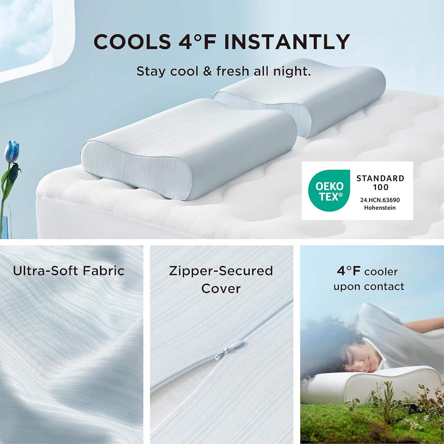Effortless Maintenance: The removable cooling pillowcase is machine-washable (cold water, gentle cycle) and quick-drying. Preserve its temperature-regulating benefits by using it without additional covers