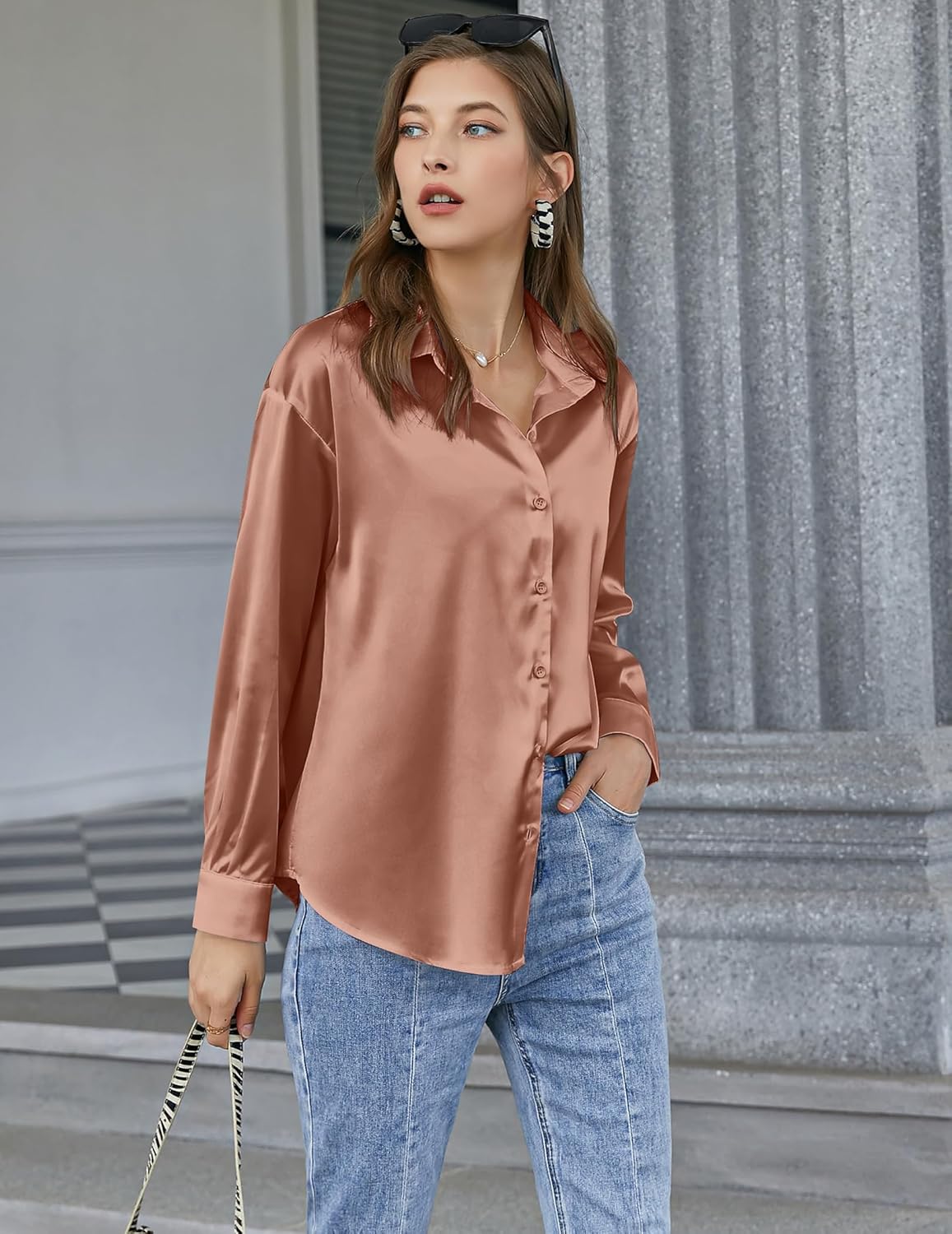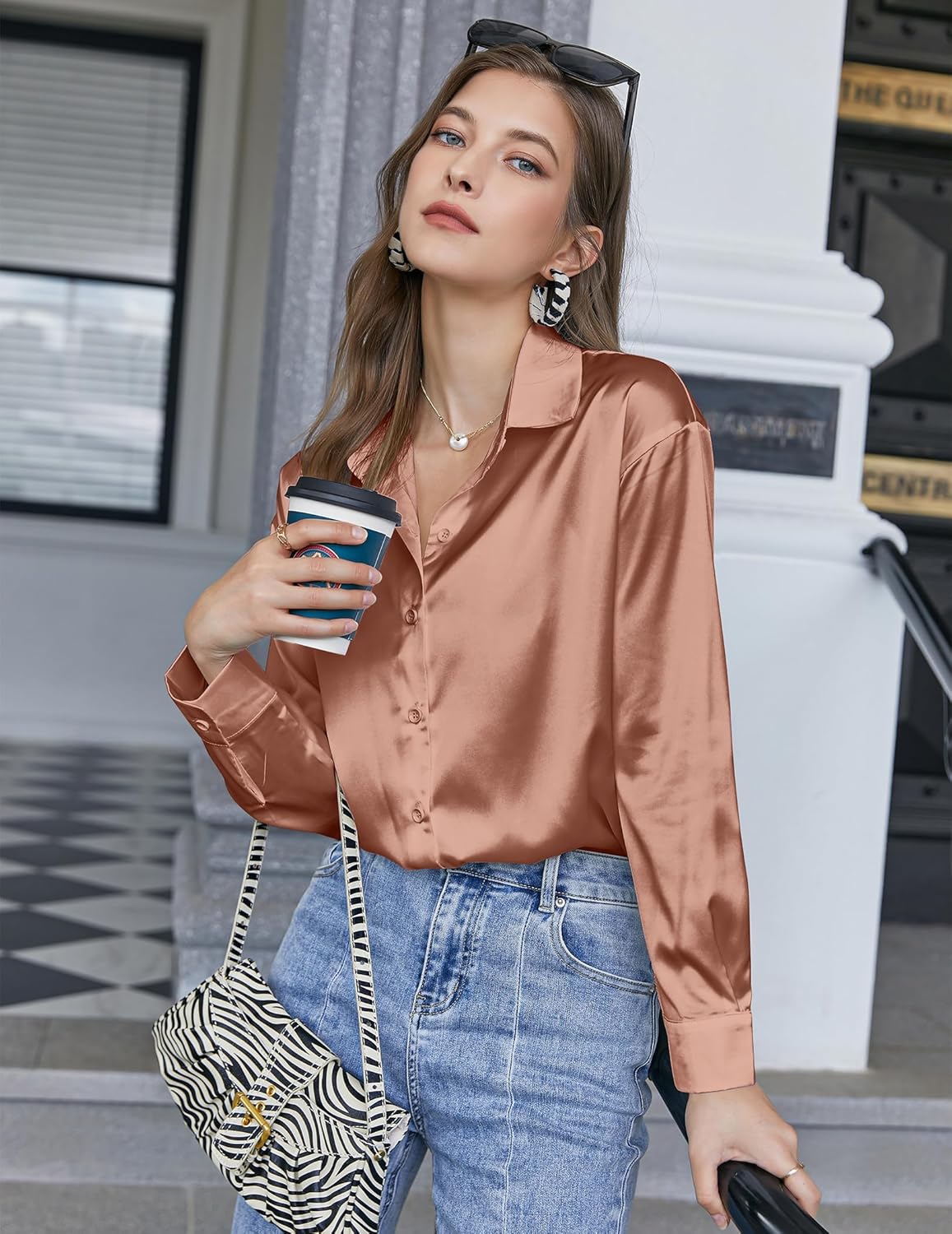 The satin silk shirt is a must-have item, it can be freely matched with any piece of clothing in your wardrobe