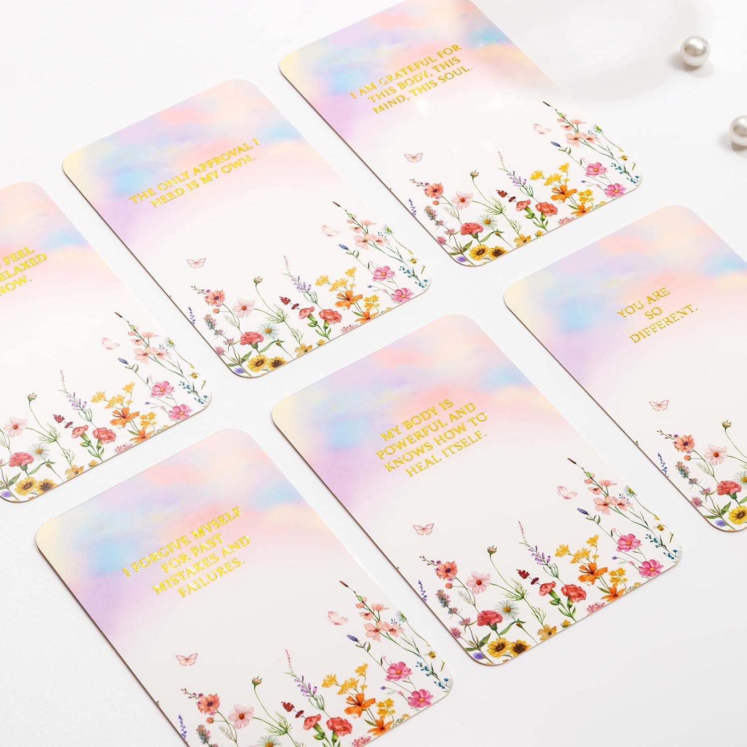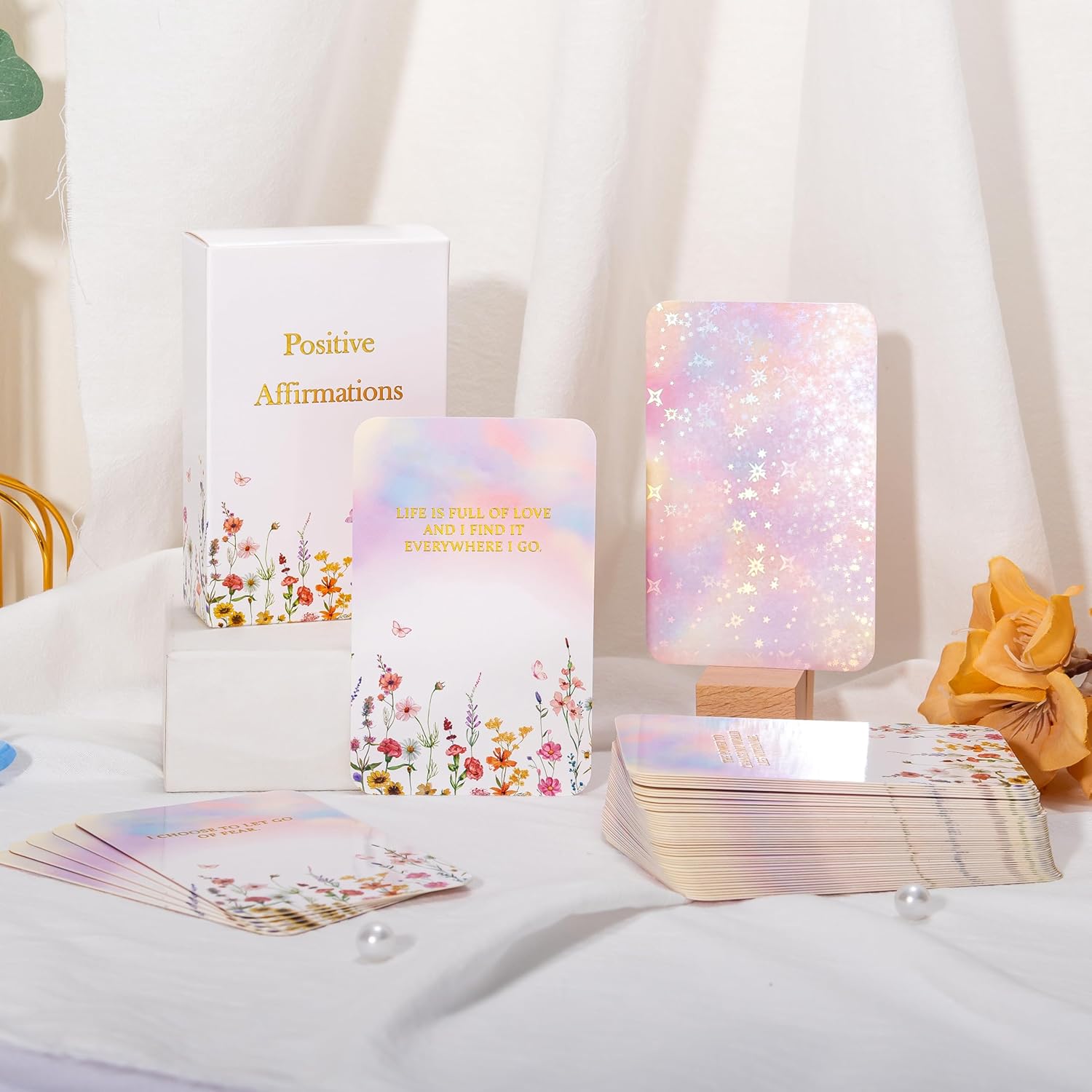 Rediscover Your Light: Every soul needs encouragement. Each positive affirmation card features a holographic star-effect backing and delicate wildflower designs, delivering heartfelt inspiration with a touch of cosmic magic. Draw a card each morning to start your day with intention