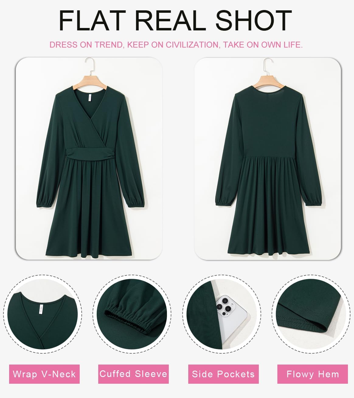 Elegant, comfy, and surprisingly pocketed—this dress is a fall favorite! 🍂👗I bought the Dokotoo Women’s 2025 Fall Wrap V-Neck Long Sleeve Empire Waist Dress for a cozy-yet-polished autumn look, and it totally delivered. It’s like the dress version of a warm hug with a side of sass.🌟 What I Loved:• Flattering Fit: The empire waist and wrap V-neck combo gave me shape without clinging. It’s flowy in all the right places and cinched where it counts.• Soft & Stretchy Fabric: It’s made of a viscose-polyamide blend with a touch of elastane, so it moves with you—not against you. Perfect for dancing at weddings or reaching for cookies at brunch.• Surprise Pockets! I didn’t expect them, but they’re there—and they’re deep enough for a phone or a snack. Instant bonus points.• Versatile Style: I wore it with boots and a chunky necklace for a fall festival, then swapped in heels and earrings for a dinner date. It’s a chameleon in dress form.• Color & Drape: The fabric has a subtle sheen and drapes beautifully. I got compliments from strangers and one very fashionable llama (long story).🧵 Sizing Tip:I’m usually a US size 8 and went with a Medium—fit like a dream. Check the size chart, though, because the empire waist means the bust fit matters more than usual.🦋 Final Verdict:Whether you’re headed to a pumpkin patch, a party, or just want to feel like the main character in a rom-com set in Vermont, this dress is a winner. It’s elegant without being fussy, and comfy without looking casual. Highly recommend!