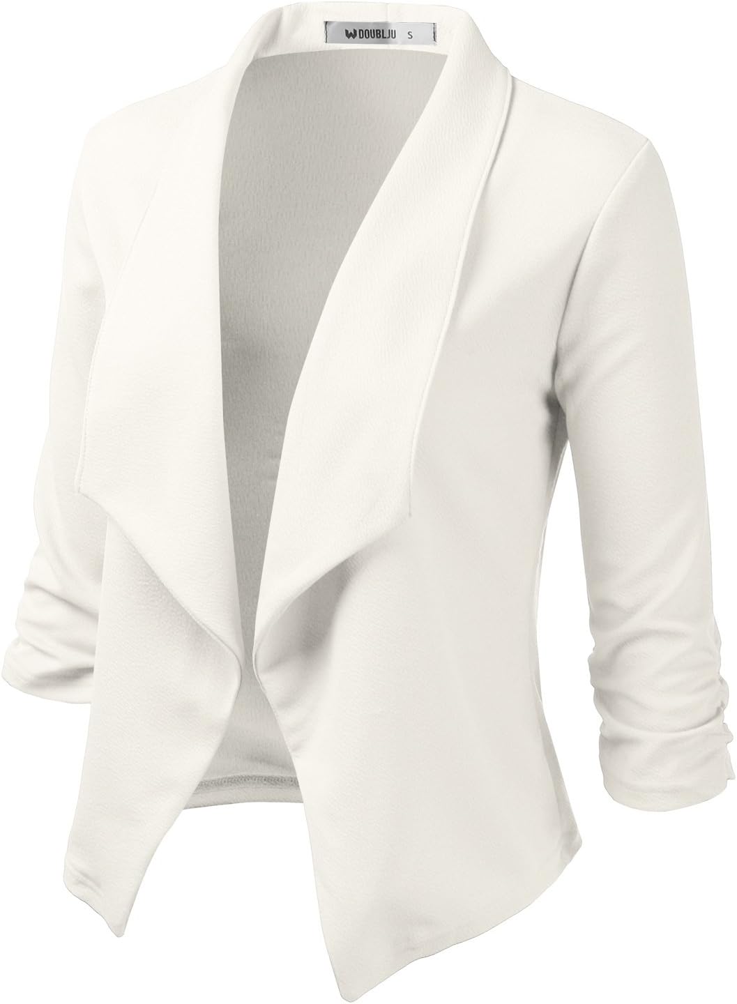 DOUBLJU Women’s Casual Work Ruched 3/4 Sleeve Open Front Blazer Jacket with Plus Size