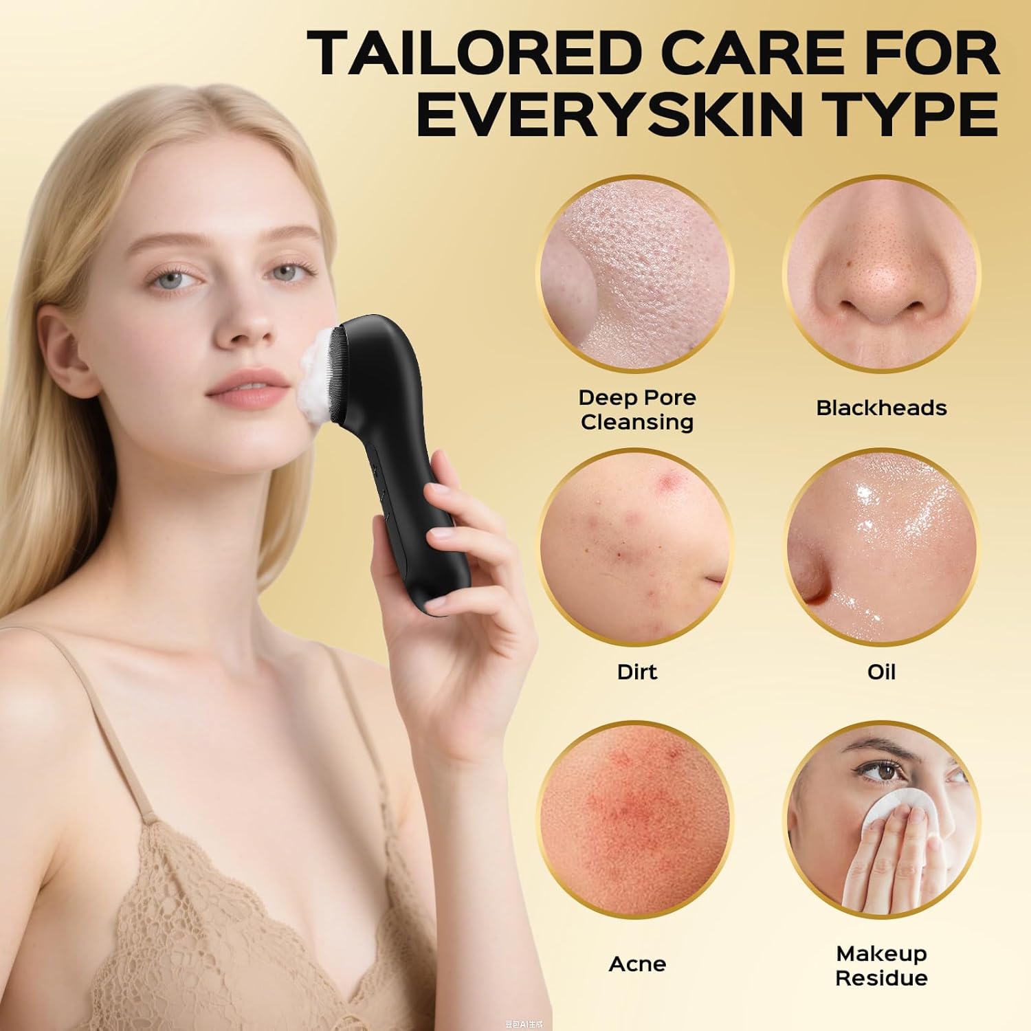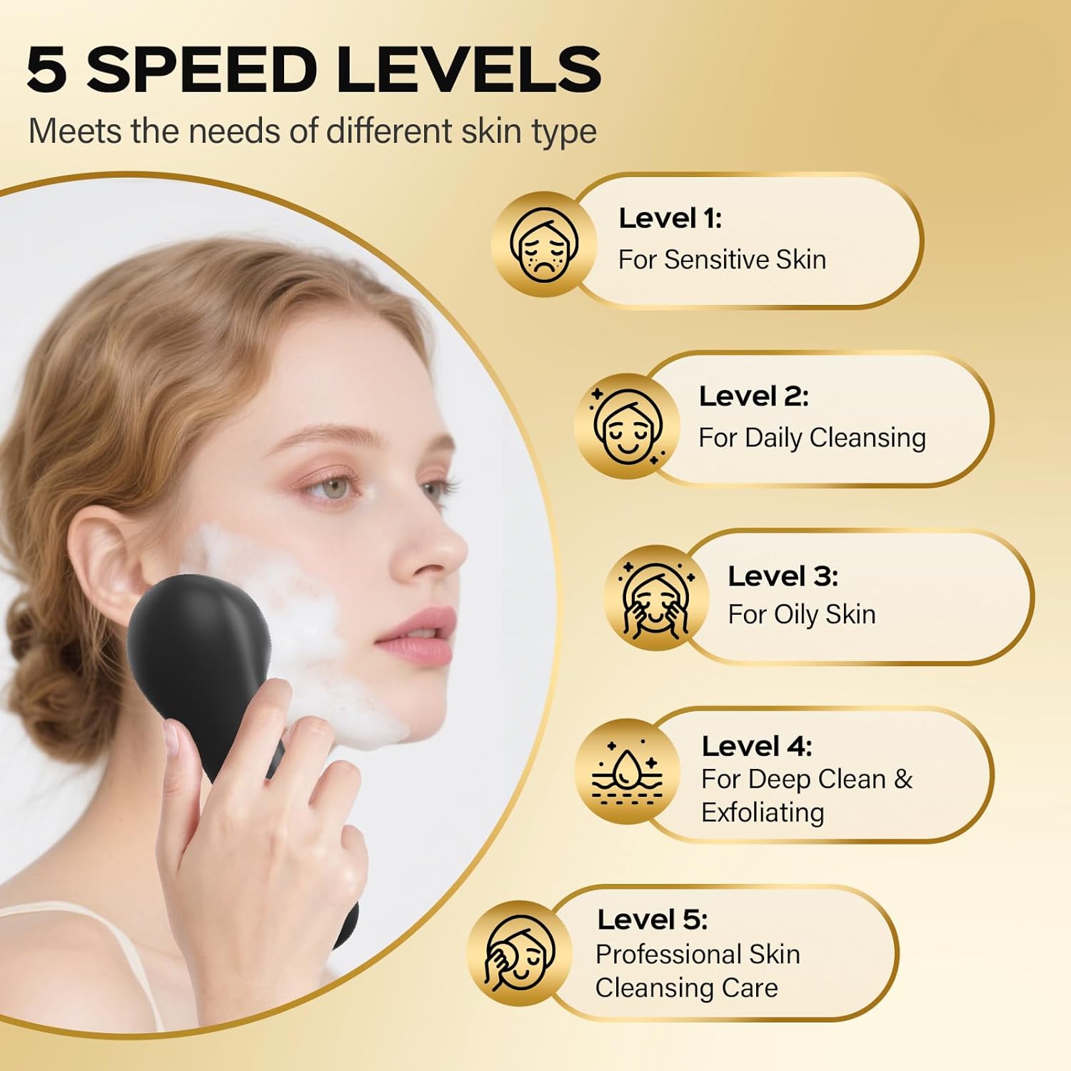Exfoliating Face Brush Face Scrubber Pro Rotation & Vibration: Engineered with whole-Plate Rotation & Vibration Tech, this face scrubber glides seamlessly over all facial areas, from the T-zone to jawline. Adjustable rotation/vibration intensity allows you to customize your experience, from a gentle morning refresh to an invigorating evening removal of daily grime.
