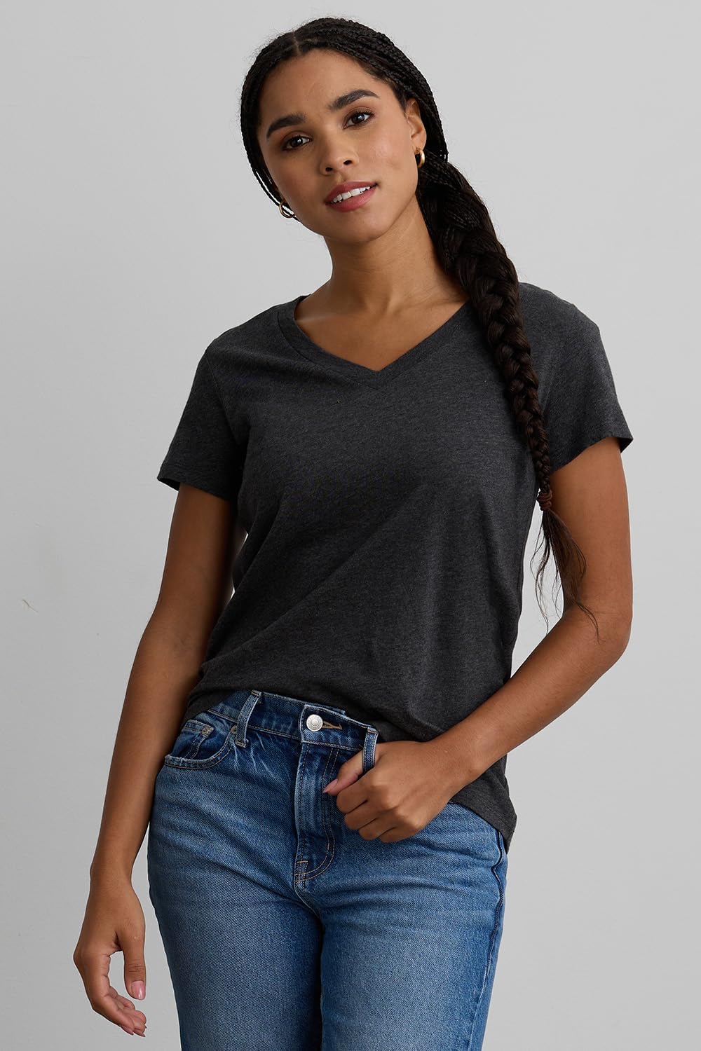 Fair Indigo Women’s 100% Organic Pima Cotton Relaxed Short Sleeve V-Neck T-Shirt