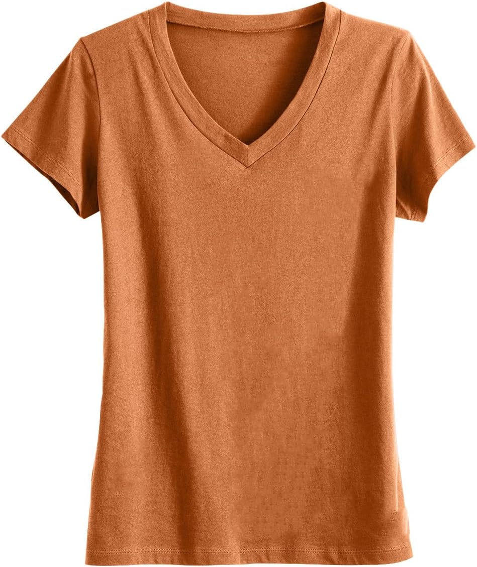 Women’s GOTS Certified 100% Organic Cotton Slub V-Neck T Shirt Short Sleeve Tee Tops