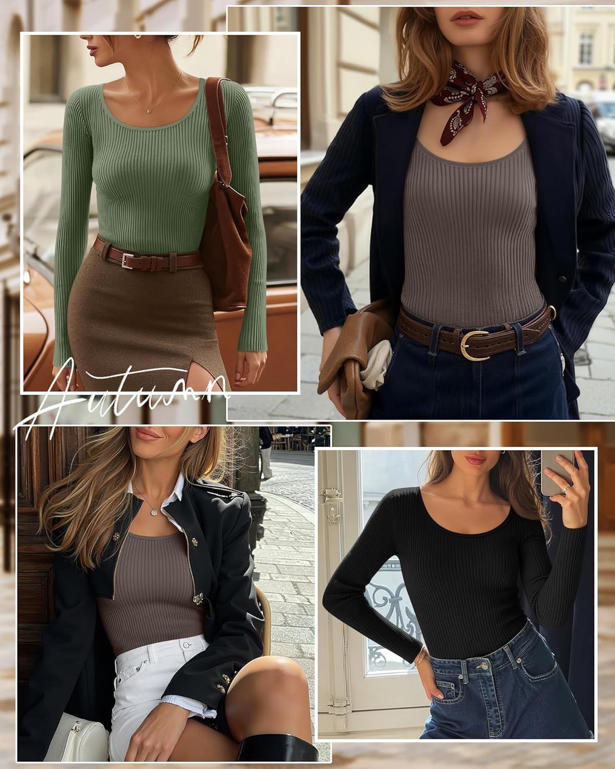8 reviews for Ficerd 3 Pack Women’s Ribbed Long Sleeve Tops Scoop Neck Slim Fit Shirts Cotton Casual Fall Going Out Basic Tee