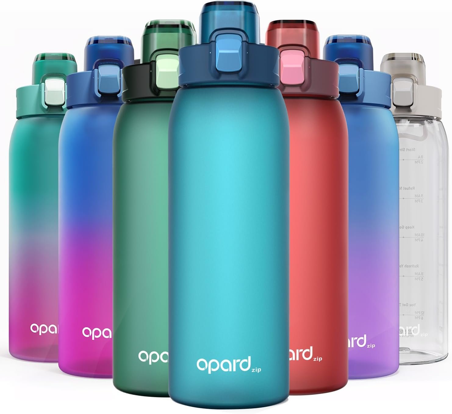 HUMANIZED DESIGNS: Our 64 oz water bottle with straw is designed with a upgraded lid that ensures 100% leak proof and dust proof. Advanced one-click button makes you drink easier, just pushing the button and the straw will pops out automatically. You can enjoy spill-proof sipping with straw or fast water flow without lid. With a wide mouth, this big water bottle not only is easy to fit ice cubes and fruits, but very easy to clean, just need to simply wash it with Baking Soda and Vinegar