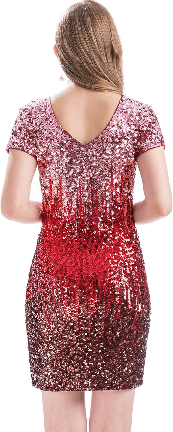 This dress was for a New Years Eve party and it was perfect! Buying online can be challenging as you can’t see the quality! The dress fit beautifully with plenty of stretch and extremely comfortable! I am 5’8” and it has a stretchy lining, hit a few inches above the knees and the sequin colors are gorgeous! I received so many compliments and danced the night away! I already sent the Amazon link to a few friends who loved it. I checked out the back of the dress after I had been sitting and no crushed or damaged sequins. Hand wash so easy to clean! Affordable and quality in a gorgeous dress! A+ for a rating!