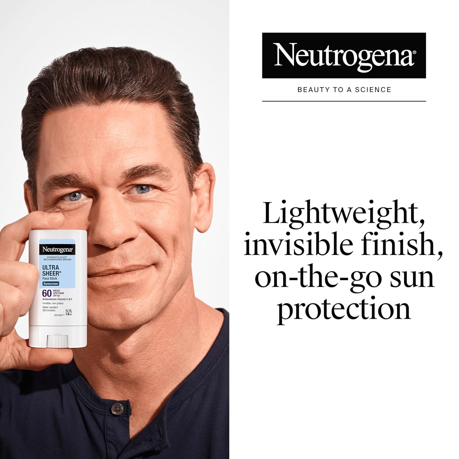 Neutrogena Ultra Sheer Face Sunscreen Stick SPF 60, Sensitive Skin Care, Mess-Free Broad Spectrum Sun Protection, Water Resistant Travel Size Sunscreen for Face, Oxybenzone-Free, .47 oz