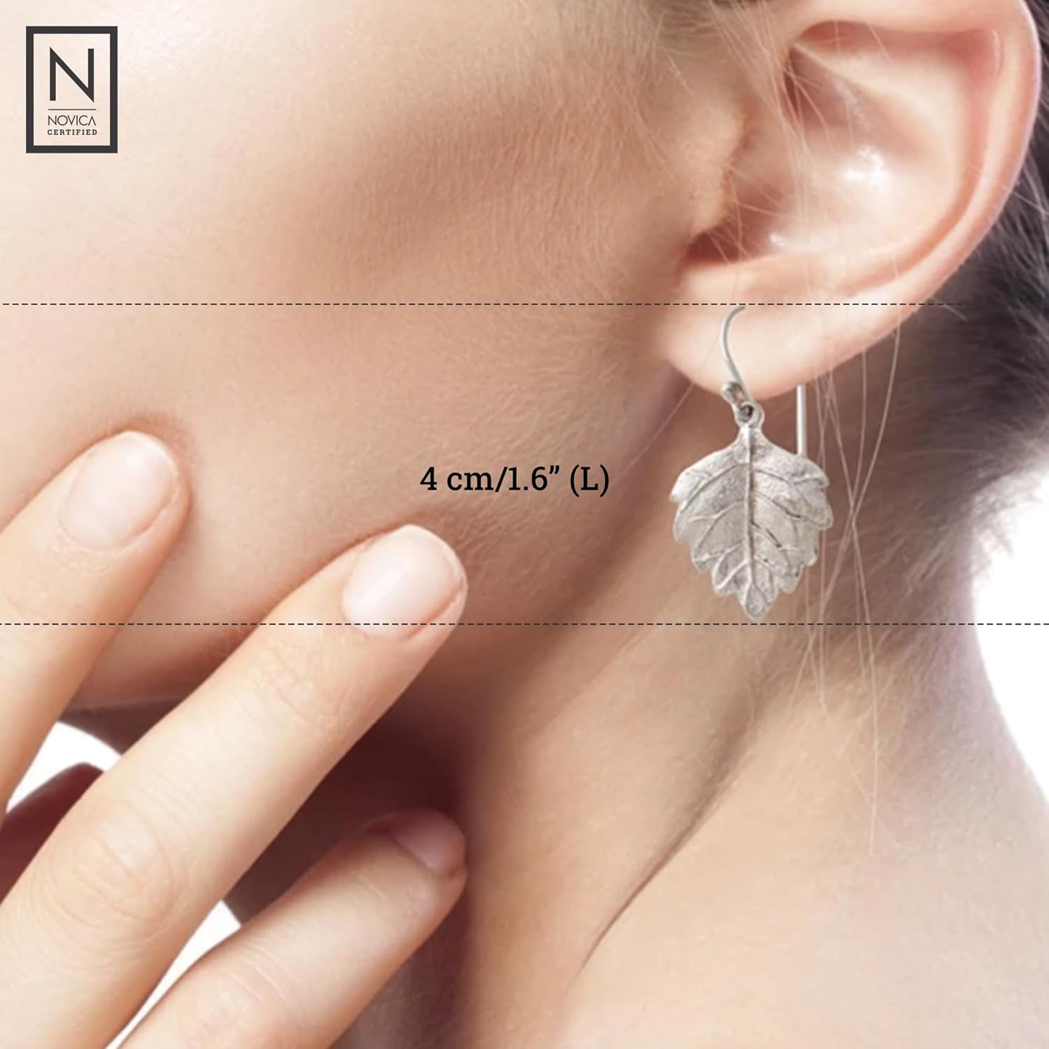 NOVICA Handmade Fair Trade Sterling Silver Leaf Earrings