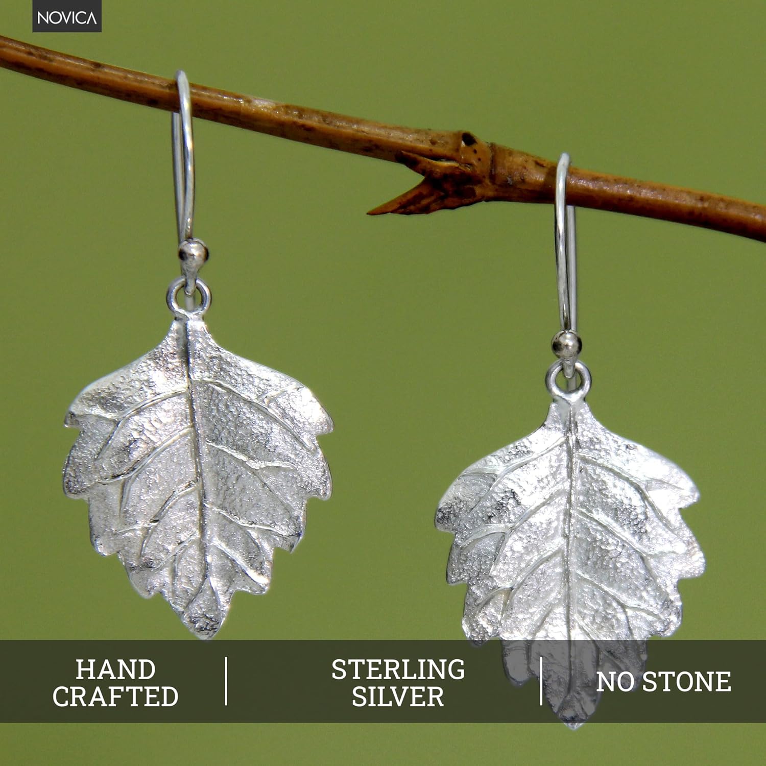 8 reviews for NOVICA Artisan Handmade Sterling Silver Dangle Earrings Fair Trade Leaf Indonesia Tree [1.6 in L x 0.7 in W] ‘ Glistening Leaves’