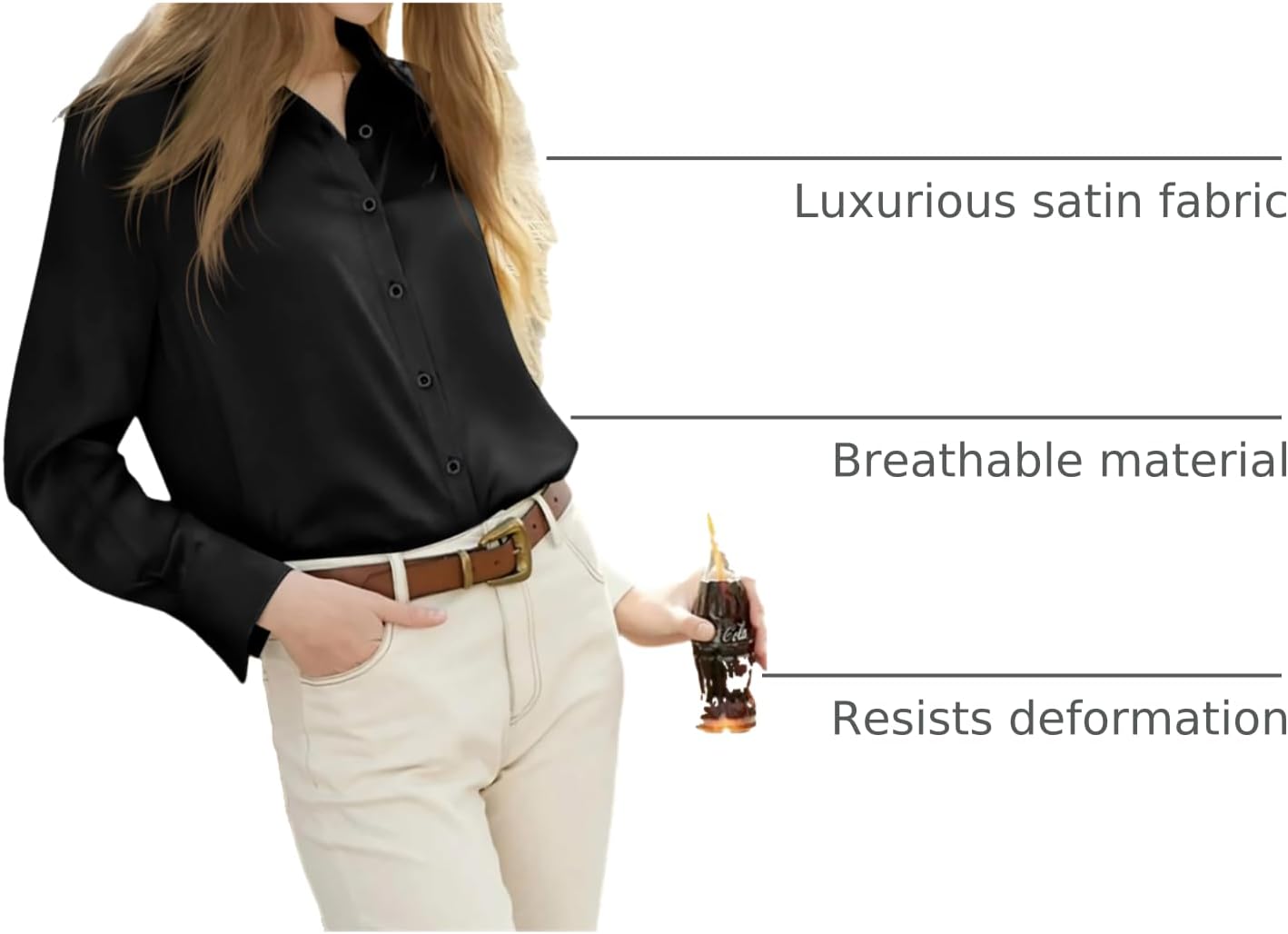 Versatile & Stylish: From a chic office outfit to a stylish evening look, this shirt transitions effortlessly from day to night. Tailored Fit with Feminine Details: The sleek, slim fit enhances your figure, while the soft satin drapes elegantly for a flattering silhouette that suits all body types.