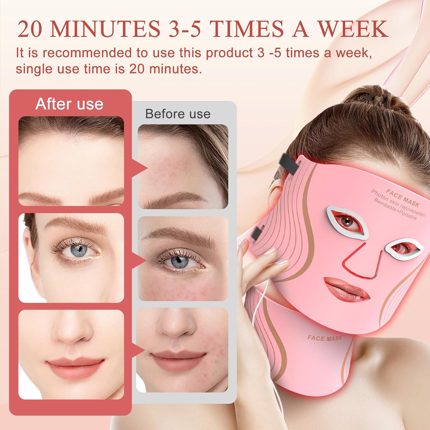 【Rechargeable, Lightweight & Easy to Use】This LED facial mask is rechargeable and designed for convenience. Clear indicator lights show charging and completion status. Weighing only 233g, it’s comfortable to wear hands-free, allowing you to enjoy your skincare routine while reading, relaxing, or watching TV.