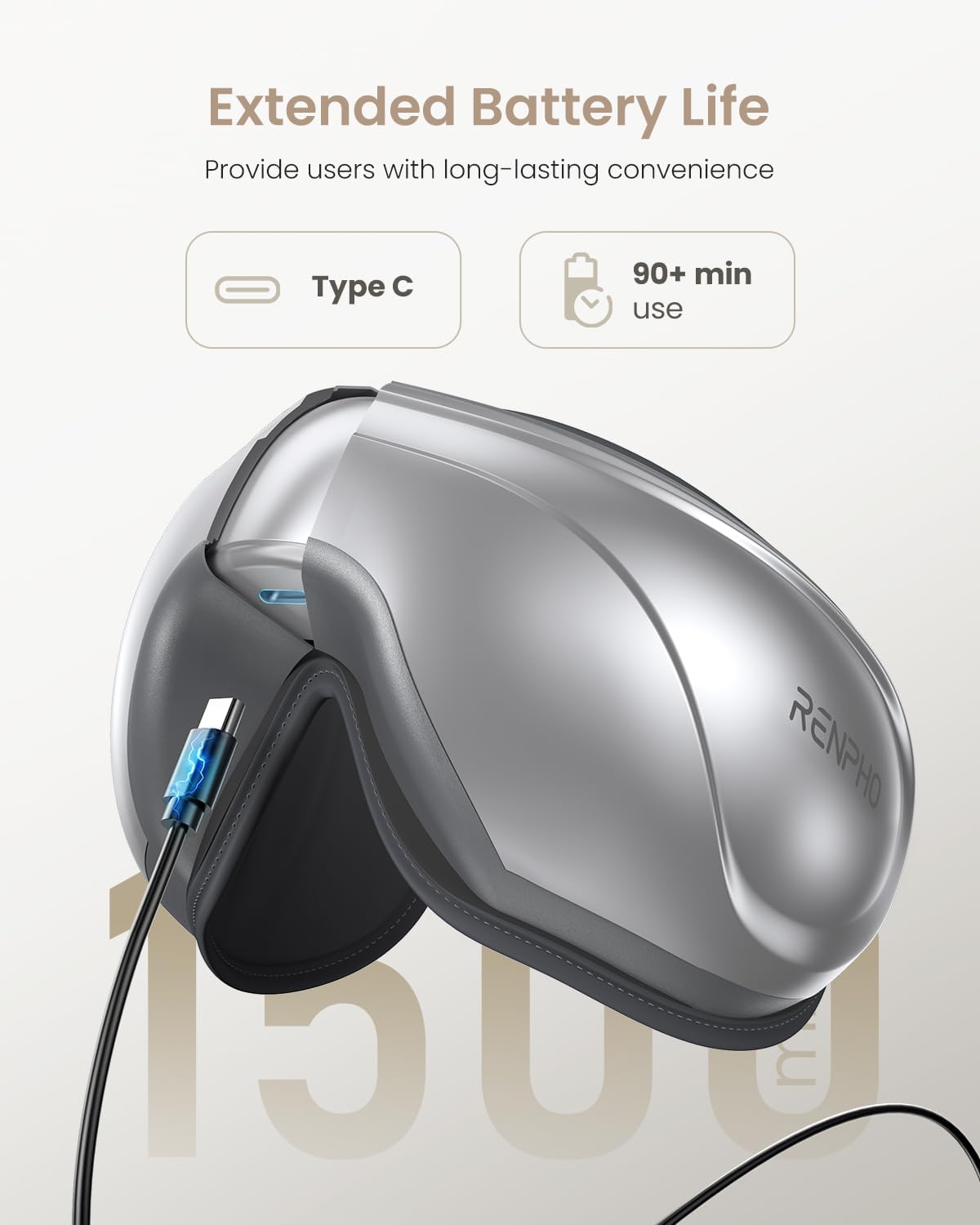 The RENPHO Eyeris 2 Eye Massager has become one of my favorite self-care tools, especially after long workdays or screen-heavy evenings. It offers a unique combination of heat, cooling, and gentle massage that truly makes a difference in how refreshed my eyes feel. From the very first use, I noticed a reduction in eye strain and tension around my temples—exactly what I hoped for.The fit is excellent. It features an adjustable strap that allows for a secure yet comfortable fit around your head, and it feels snug without putting pressure on your eyes. The contour of the eye mask rests lightly on your face, accommodating various face shapes well. It also doesn’t slide around during use, which makes it easier to fully relax and enjoy the experience.The heat setting is wonderfully soothing, especially when I’m winding down before bed. It helps relax the muscles around my eyes and promotes a calm, sleepy feeling. The cooling option, on the other hand, is a welcome relief during the day or after a headache—it feels like a spa treatment and works surprisingly well to reduce puffiness and discomfort.The massaging feature uses subtle air compression and vibration that mimic the feeling of gentle kneading. It’s not overwhelming or too intense. The controls are easy to use, and I appreciate that it features Bluetooth, allowing you to play calming music or ambient sounds while you relax.This device also folds for portability, and the battery life has held up well between charges. I’ve already gifted one to a family member, and it’s a perfect idea for Father’s Day, birthdays, or anyone who deals with migraines, screen fatigue, or trouble sleeping.If you’re looking for a thoughtful and genuinely helpful wellness tool, the Eyeris 2 is absolutely worth it. It feels indulgent but delivers real benefits with a comfortable, well-designed fit.