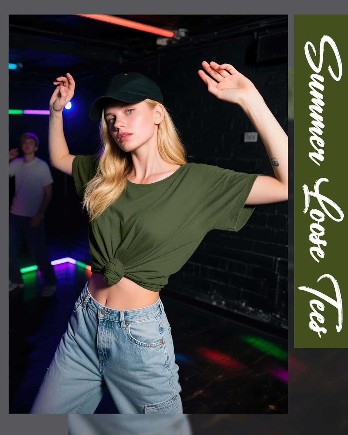 Riyiper 3 Pack Women’s Crewneck Tshirts, Casual Summer Loose Tees Basic Short Sleeve Tops Classic Plain Tees Tops for Ladies