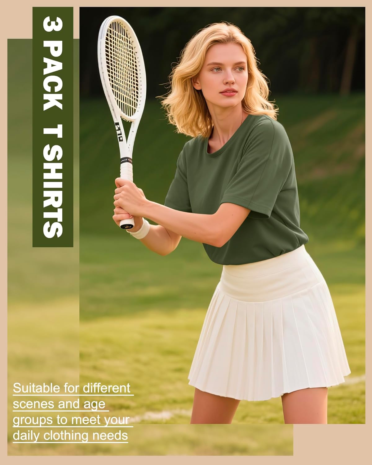 Riyiper 3 Pack Women’s Crewneck Tshirts, Casual Summer Loose Tees Basic Short Sleeve Tops Classic Plain Tees Tops for Ladies