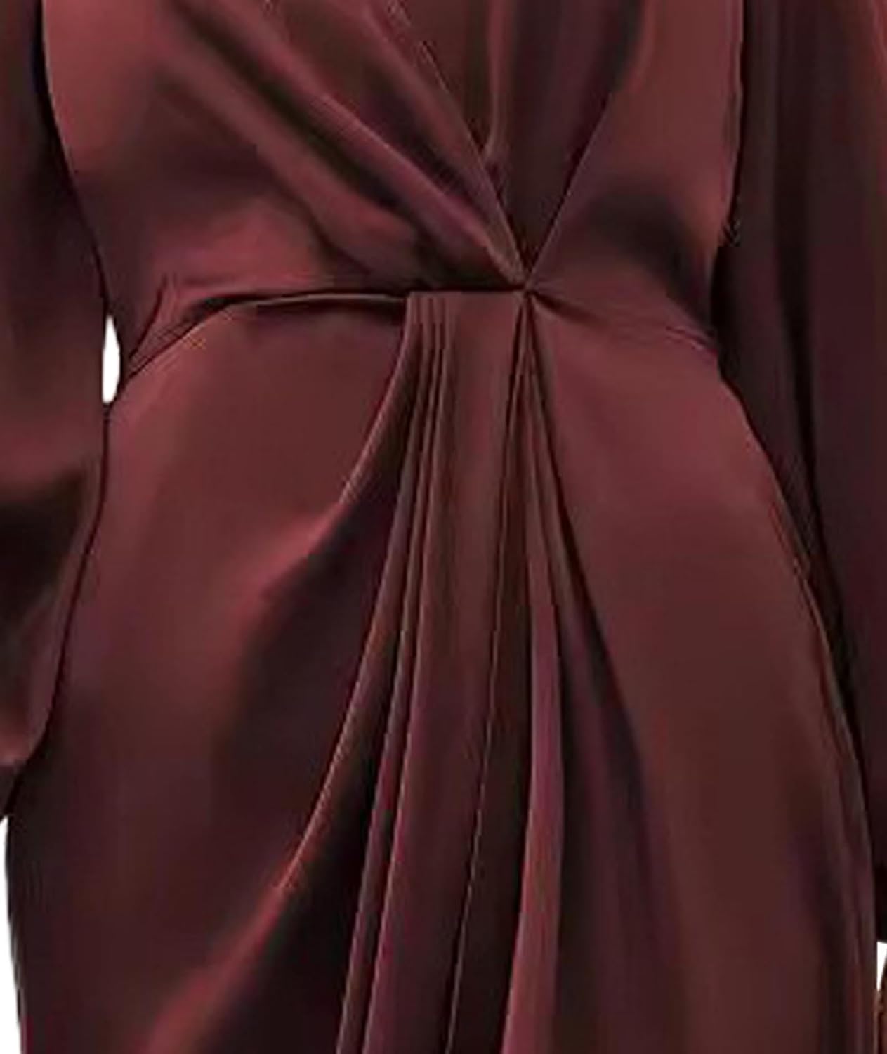 Sexyshine Women’s Wrap V Neck Long Sleeve Satin Midi Dress Split Hem Ruched Pleated Formal Evening Party Dresses
