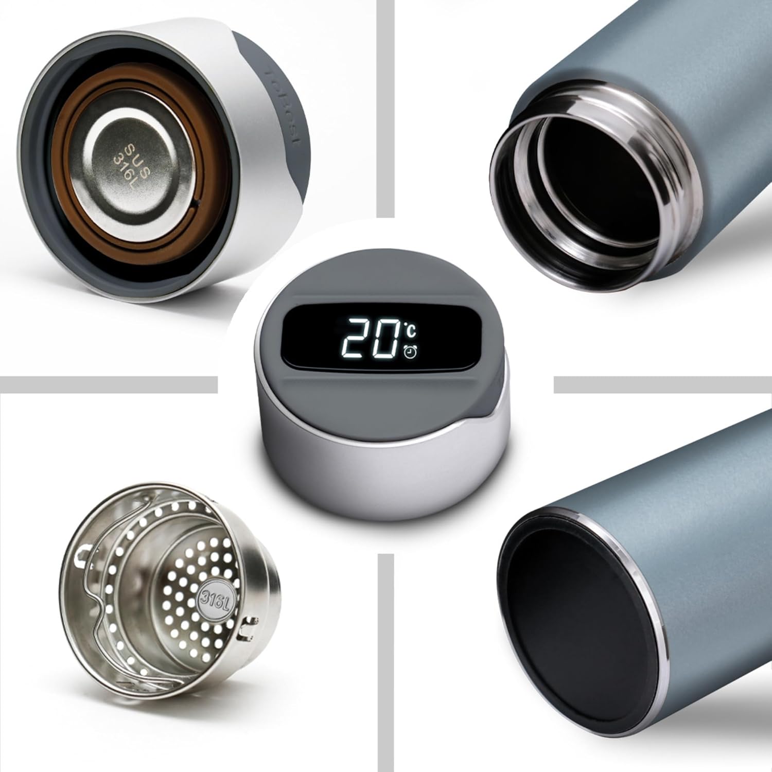 The Smart Bottle made from stainless steel is an excellent option for anyone needing a durable, temperature-retentive bottle. The double-walled, vacuum-insulated design keeps drinks hot or cold for hours, while the sleek gray exterior adds a modern touch. The built-in temperature display is a standout feature, offering a quick and easy way to check your drink’s temperature with a simple tap.However, while the bottle itself performs well, the lid doesn’t hold up well in the dishwasher. After a few cycles, it develops a strange coating, which detracts from the overall experience. Handwashing the lid is recommended to preserve its integrity.Despite this minor issue, the bottle’s overall build quality, leak-proof design, and practical temperature display make it a solid choice for home, office, gym, or travel use. It’s a stylish, functional solution that balances form and function—just be cautious with cleaning the lid.