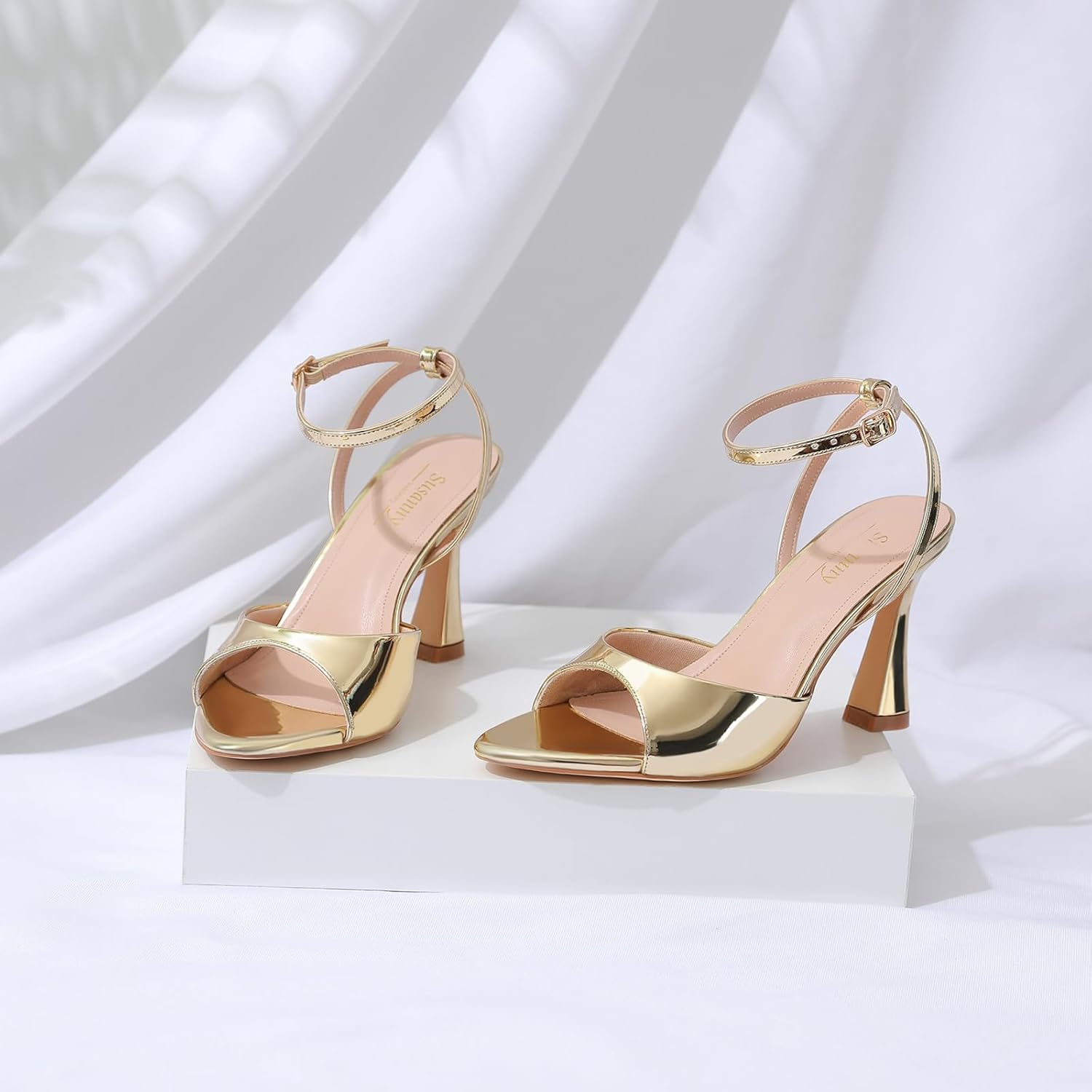 10 reviews for Susanny High Heels for Women Pointed Open Toe Strappy Chunky Block Heels Ankle Strap Stiletto Kitten Heeled Sandals Wedding Bridal Party Prom Sexy Dress Shoes