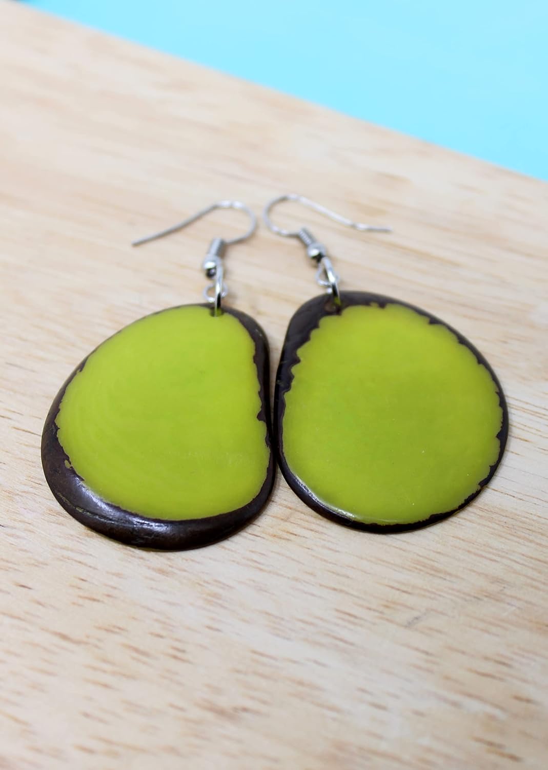 2 reviews for Tagua Earrings Chips in Lime Green Handmade Fair Trade, LIghtweight, by Florama Natural Jewelry