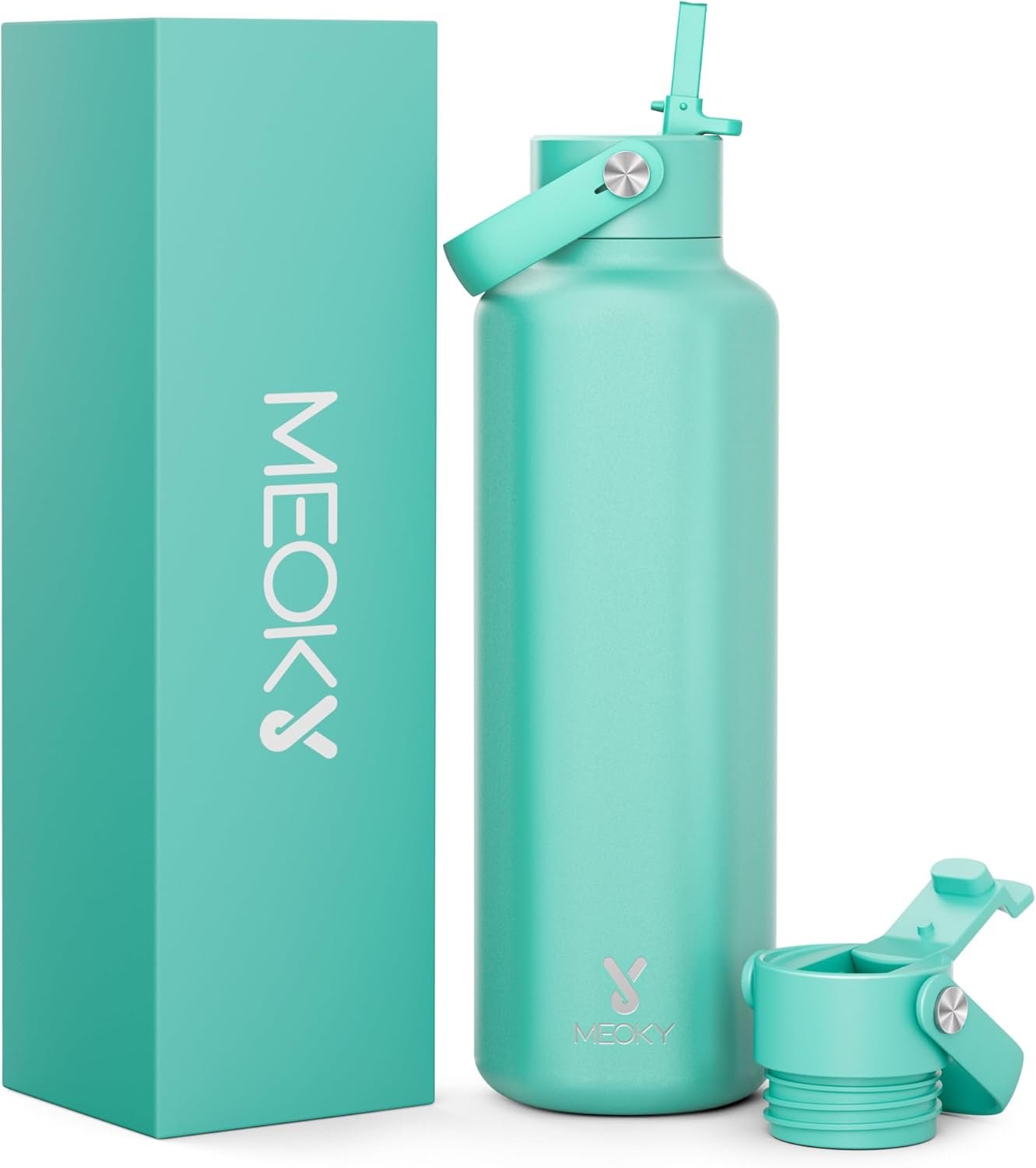Meoky Men Insulated Water Bottle for Sports: 24 oz Stainless Steel Water Bottle with Straw and Flip Lid for Work – Commuters Gym Enthusiasts, Mint Green