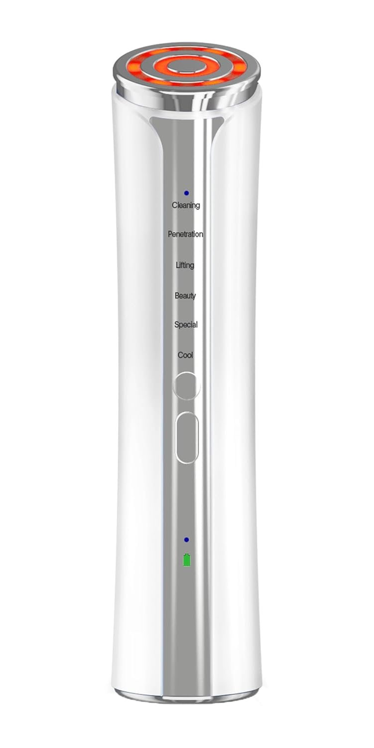 I am very happy with this facial device! It is lightweight, elegant, and easy to use. The different modes like Cleaning, Penetration, Lifting, Beauty, Special, and Cool make it a very complete tool for skin care. I especially like the lifting and cooling functions because they leave my skin feeling fresh and tighter after every use.The design is modern and comfortable to hold, and the light therapy combined with vibration gives a relaxing spa-like experience at home. After a few uses, I noticed my skin looking smoother, brighter, and more hydrated.It charges quickly, holds battery well, and is very convenient for daily routines. Overall, this is a great investment for anyone who wants to improve their skincare routine without spending too much. Highly recommend!
