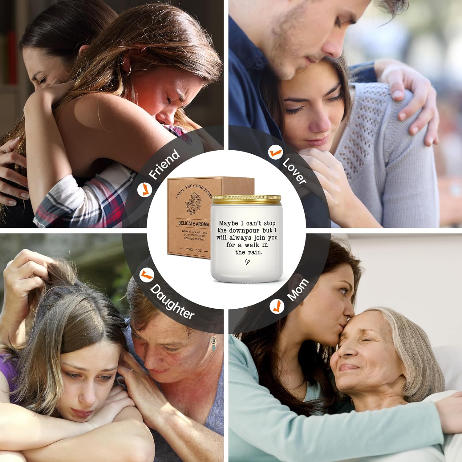 【THOUGHTFUL GIFT IDEAS】It can be hard to know exactly what to say when a loved one is experiencing a difficult event. This CINGUE candle with warm quote “Maybe I can’t stop the downpour but I will always join you for a walk in the rain” makes it a special gift for best friends. This candle can cheer them up and make them feel better, whether they’re experiencing loss of loved one, a tough breakup, divorce, cancer, miscarriage or just a bad day—during any time of year.