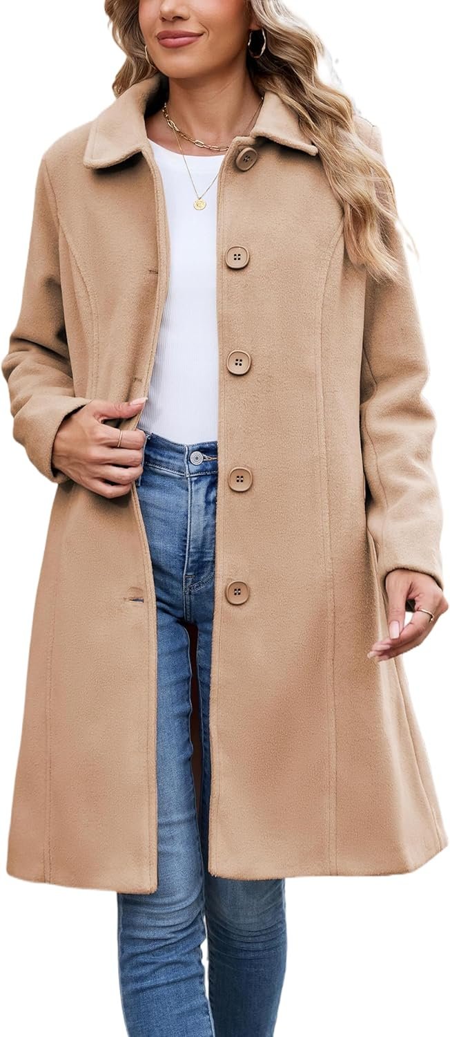 UANEO Womens Peacoat Faux Wool Blend Single Breasted Long Trench Coat Dress Overcoat Winter with Pockets