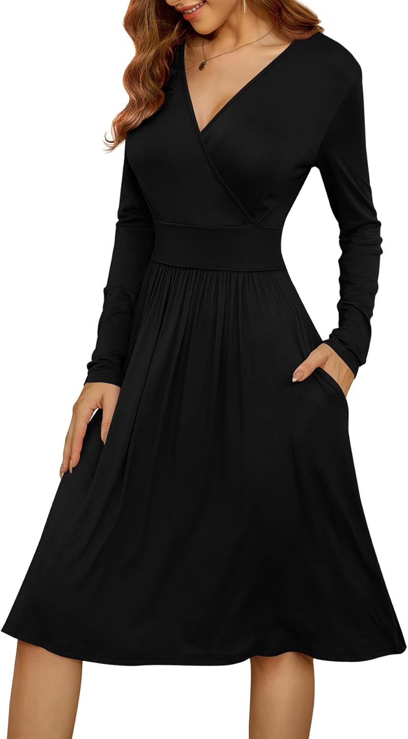 WEACZZY Women’s Fall Long Sleeve V-Neck Floral Party Dress with Pockets DressesDresses