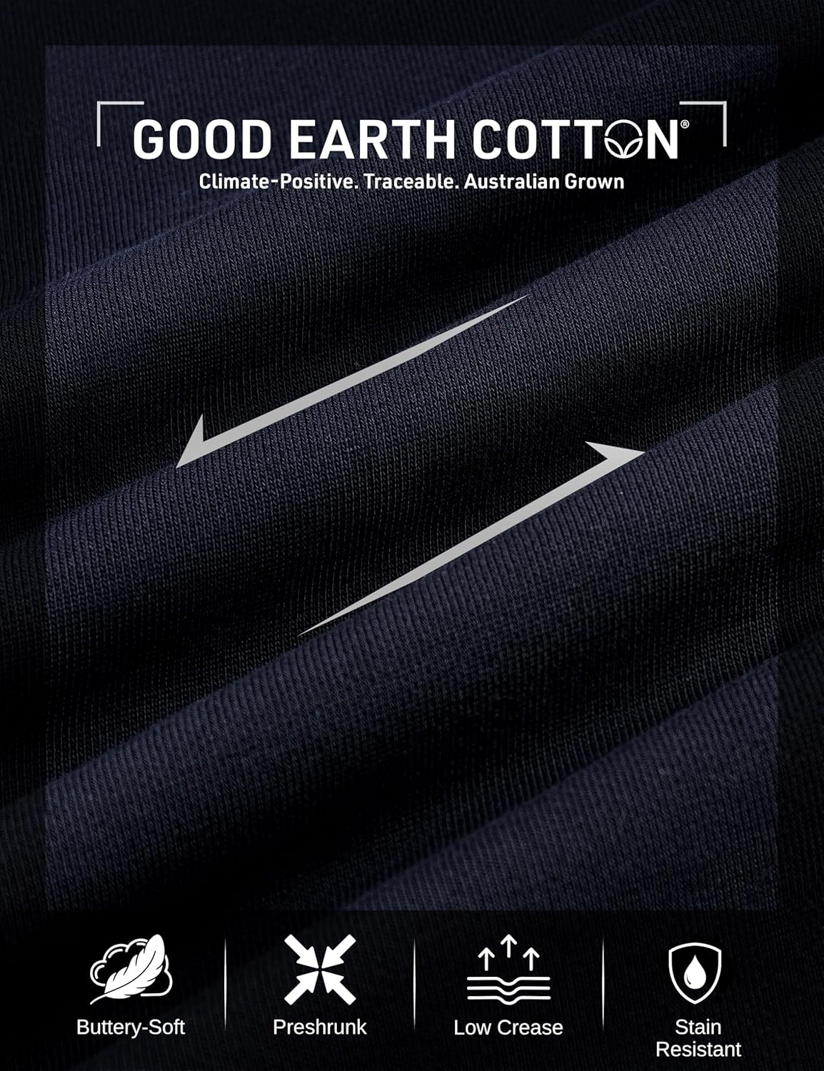 Material: 100% Australian Good Earth Cotton (7oz compact, durable, lightweight, and smooth against the skin)