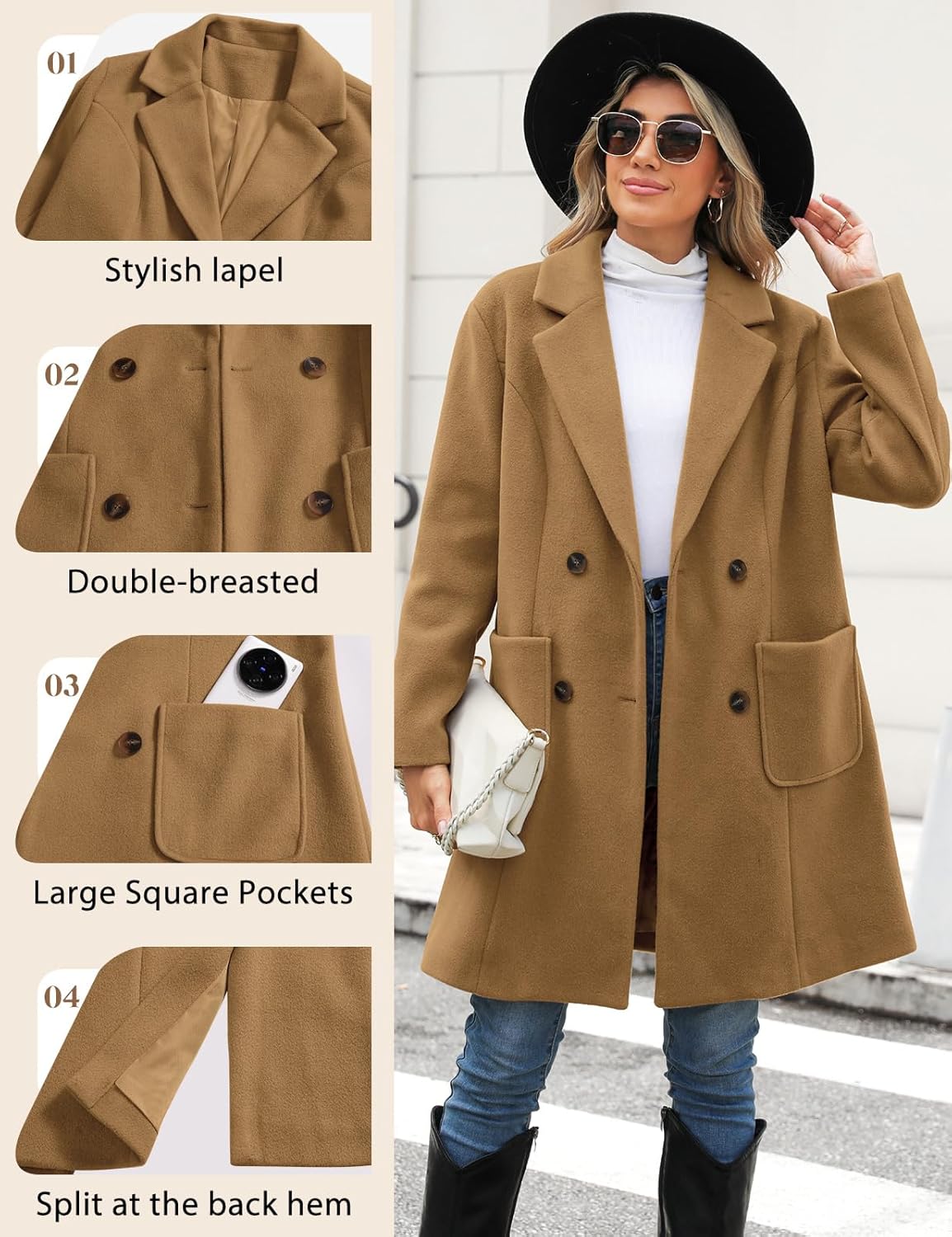 I love this coat. It came so nicely packaged that it barely got wrinkled in transit and it was ready to wear. The material is beautiful and soft and love how elegant it looks in black. It is fits so nicely and it great keeping the wind out and is toasty warm. With the lining inside it’s great if you like wearing layers.You are able to dress it up or down as it works well with jeans and a top or jazz it up with an evening dress and jewelry. I love the versatility and would definitely recommend especially for how cheap it is.
