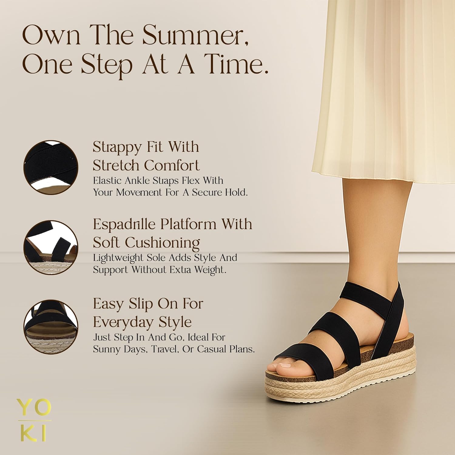 YOKI CHIARA-10 Strappy Womens Sandals With Espadrille Platform – Slip On Wedge Sandals For Women, Lightweight Comfortable Wedge Sandal